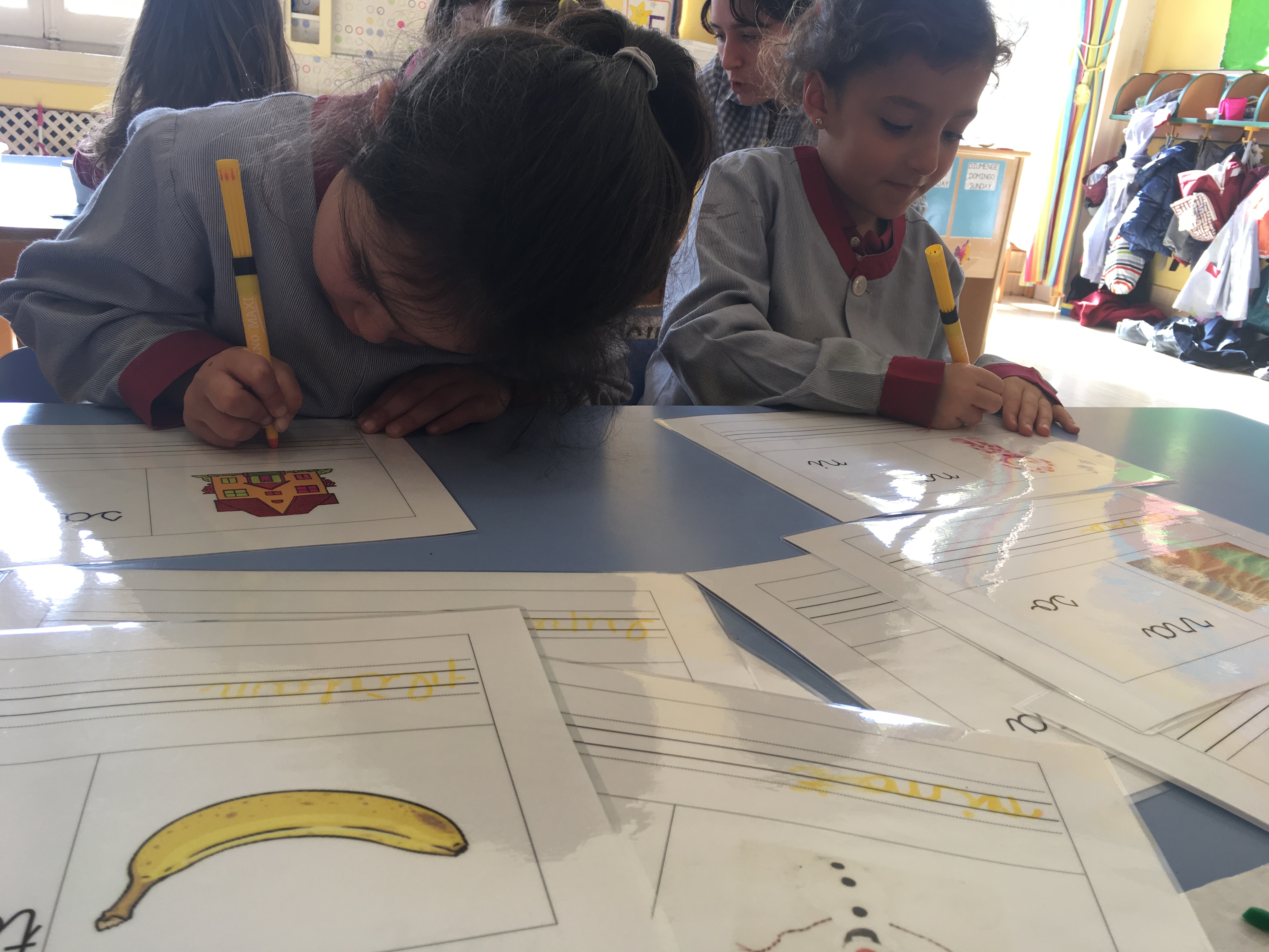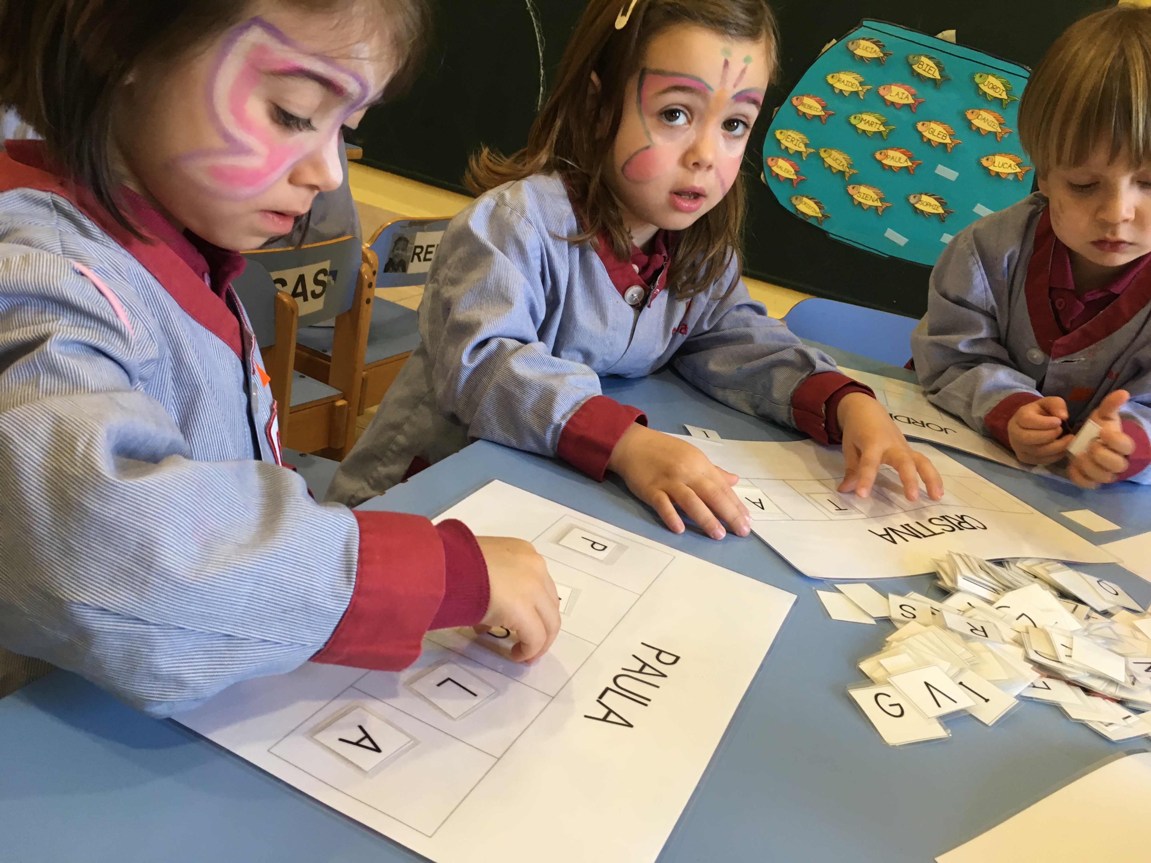 Els nens i nenes d’Educació Infantil continuen aprenent, jugant i gaudint amb els tallers “Juguem amb les lletres”. Aquests tallers potencien el treball cooperatiu i ajuden al desenvolupament de la motricitat fina i la lectoescriptura. El material que utilitzen està seqüenciat de manera que ens permet adequar-nos al ritme maduratiu de cada nen/a.