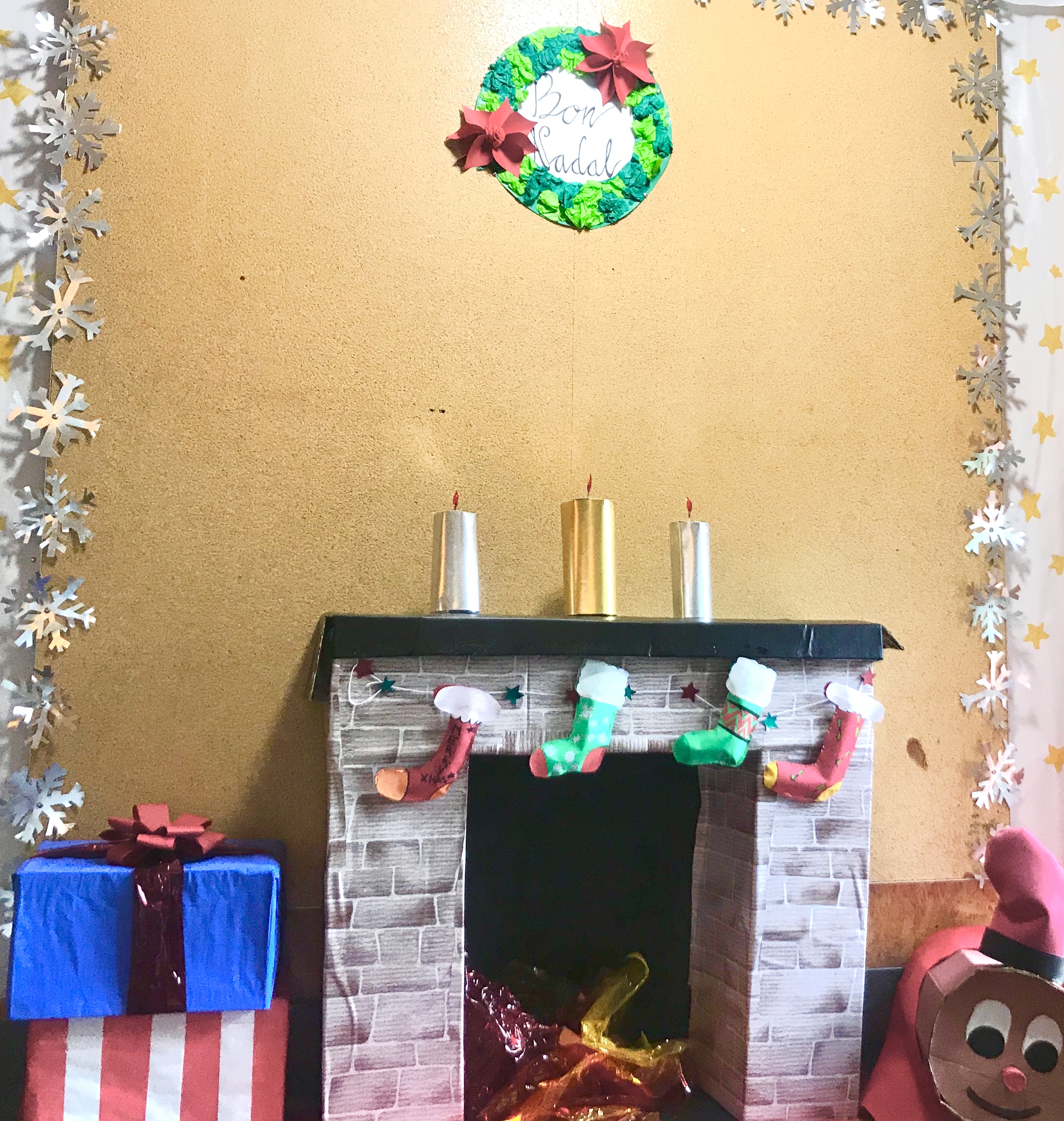 El dimarts, els alumnes de 3r d’ESO hem decorat el vestíbul del seu pavelló. Per això hem penjat flocs de neu a la paret principal i un rètol que ens desitja a tots Bon Nadal, també hem recreat una xemeneia amb espelmes i a la banda dels regals hem posat el tió de Nadal, que és una tradició molt catalana. A més hi ha un arbre de Nadal amb els desitjos per al proper curs que hi han penjat els alumnes de quart d’ESO.