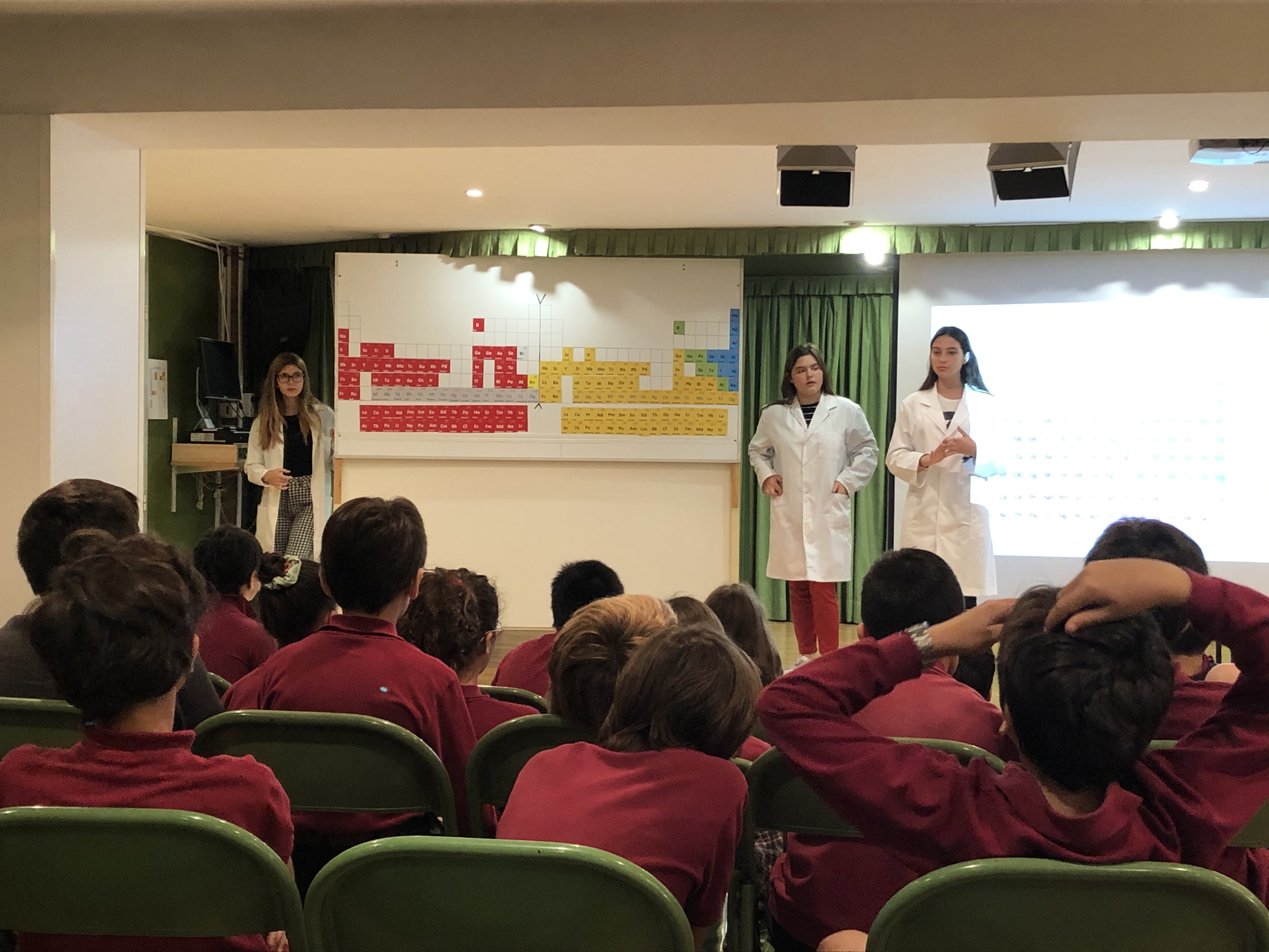 El passat dimecres 6 de novembre, de 9:00 a 10:00 del matí, els alumnes de sisè de primària van tenir l’oportunitat de gaudir d’una estona aprenent els elements de la taula periòdica. Van fer-ho d’una manera molt dinàmica i organitzada per alguns dels alumnes de primer de batxillerat.